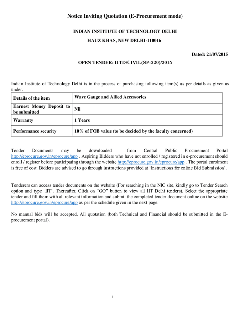 Get the free Notice Inviting Quotation (e-procurement Mode)