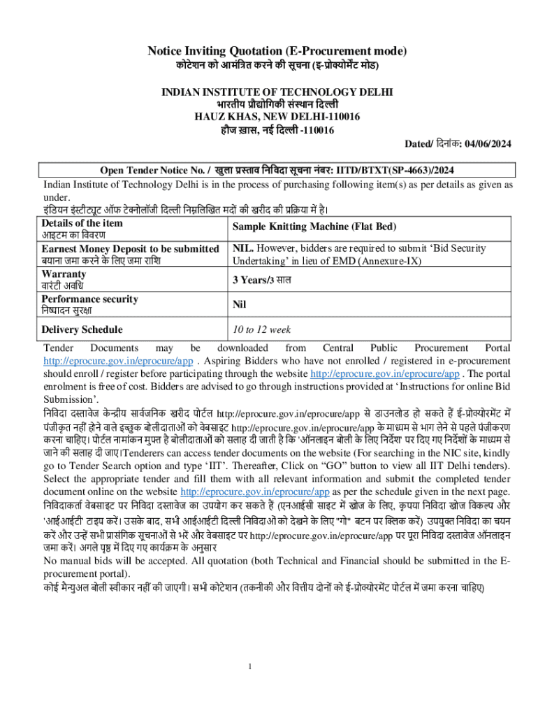 Get the free Notice Inviting Quotation (e-procurement Mode)