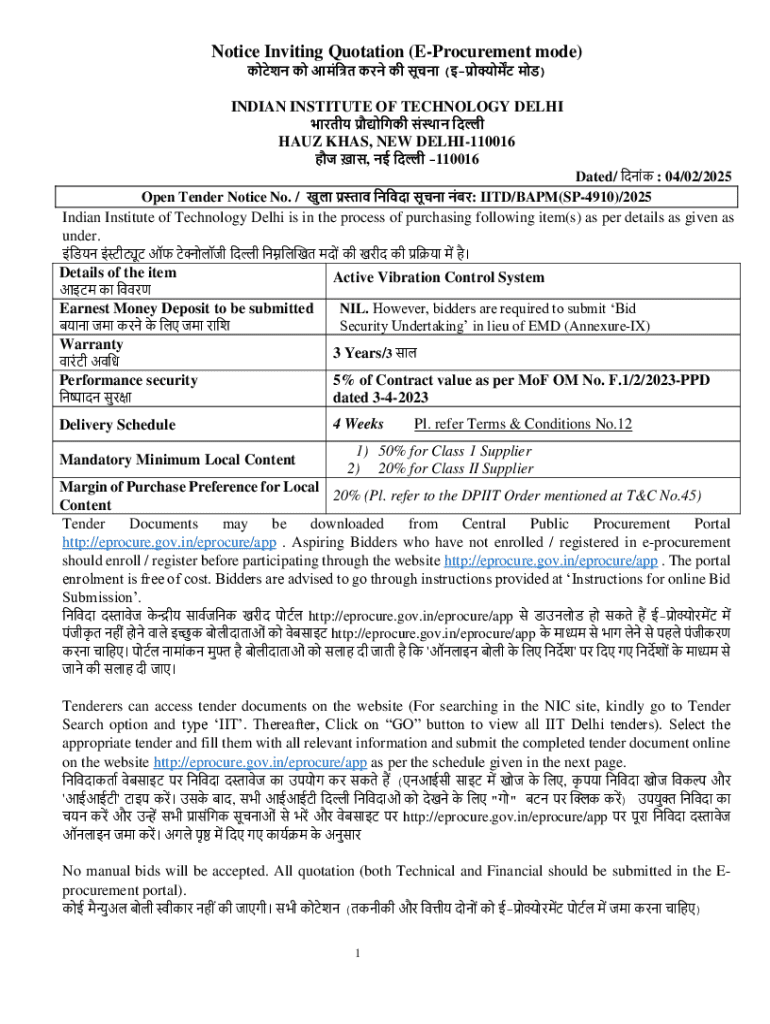 Get the free Notice Inviting Quotation (e-procurement Mode)