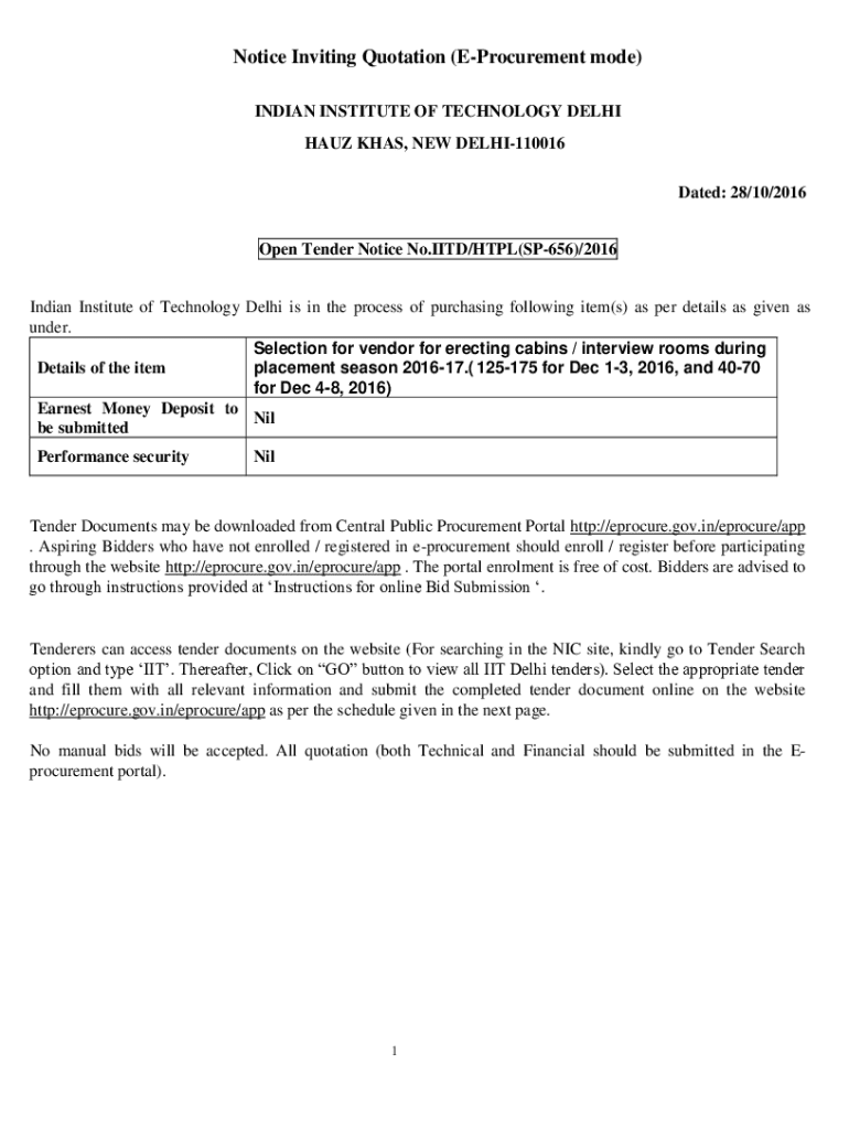 Get the free Notice Inviting Quotation (e-procurement Mode)