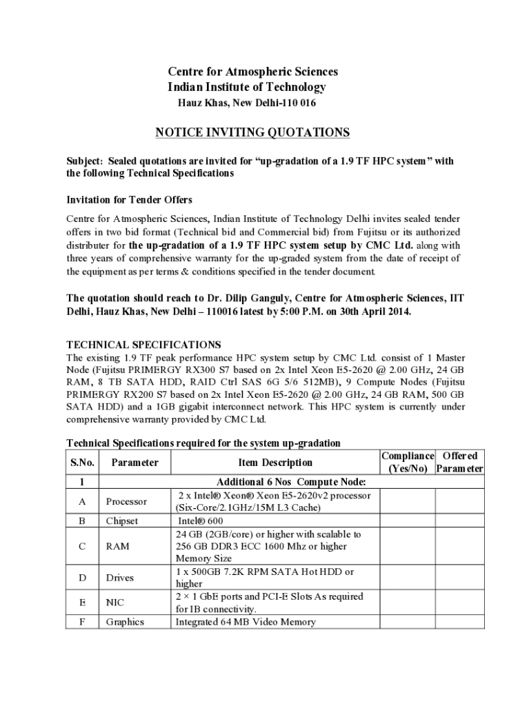 This document invites tender offers for the up-gradation of a high-performance computing (HPC) system, detailing specifications, terms, and submission criteria.