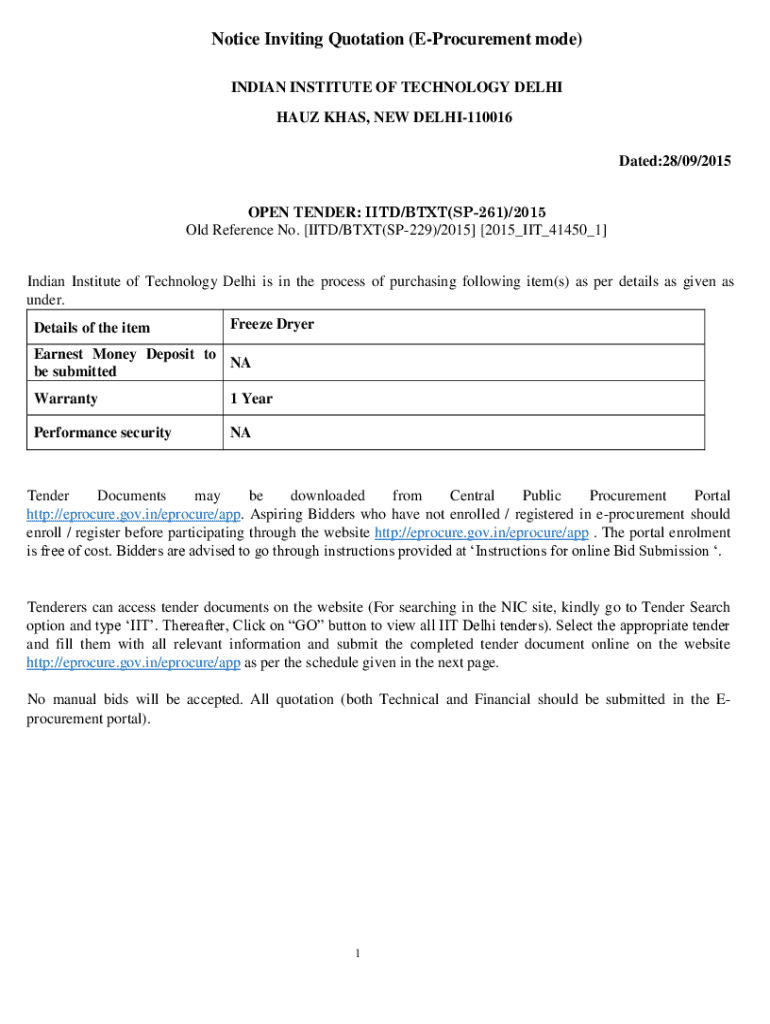 Get the free Notice Inviting Quotation (e-procurement Mode)