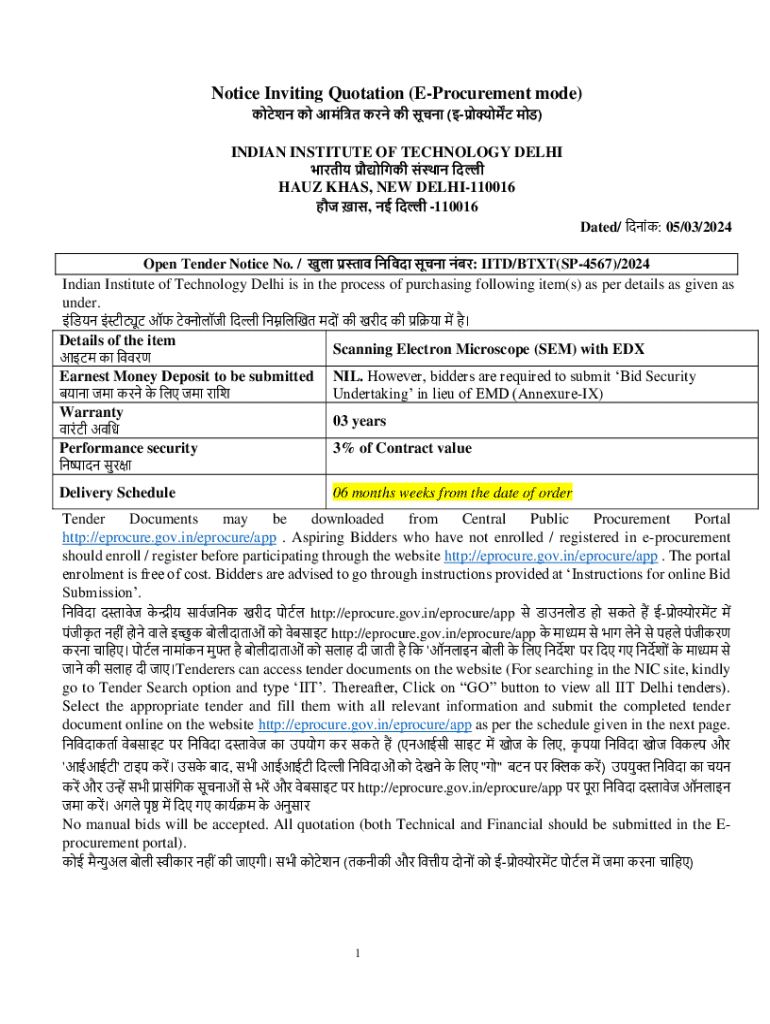 Get the free Notice Inviting Quotation (e-procurement Mode)