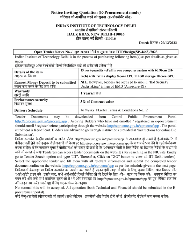 Get the free Notice Inviting Quotation (e-procurement Mode)