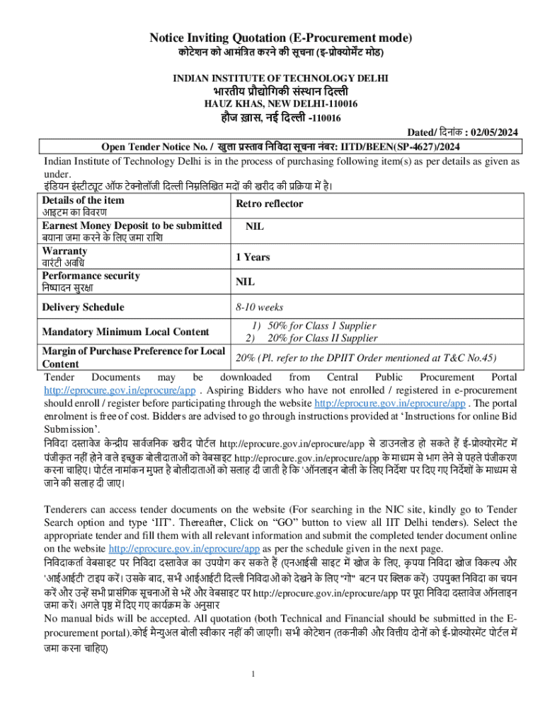 Get the free Notice Inviting Quotation (e-procurement Mode)