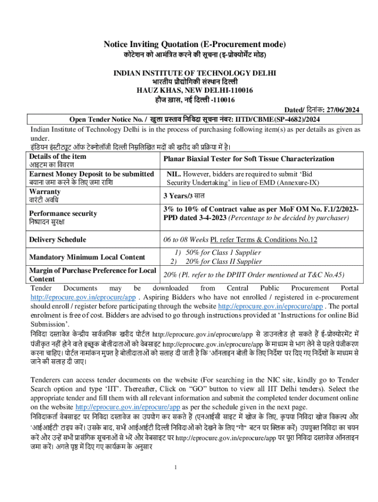 Get the free Notice Inviting Quotation (e-procurement Mode)