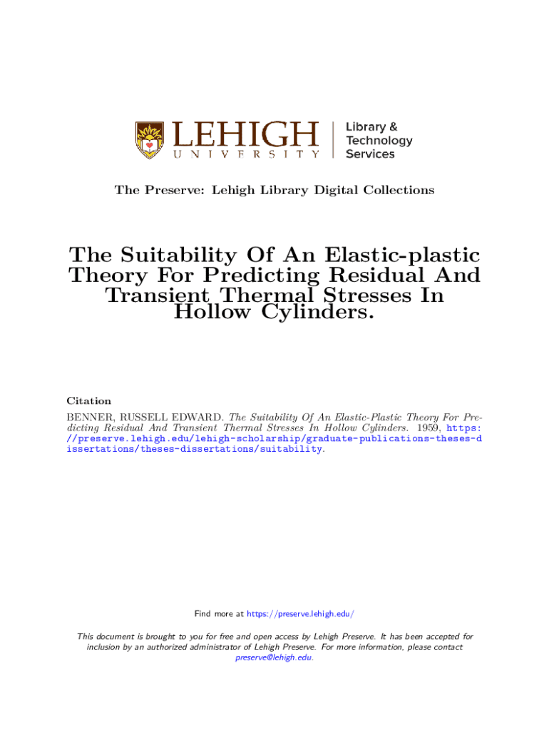 Get the free the Suitability of an Elastic-plastic Theory for Predicting Residual and Transient T...