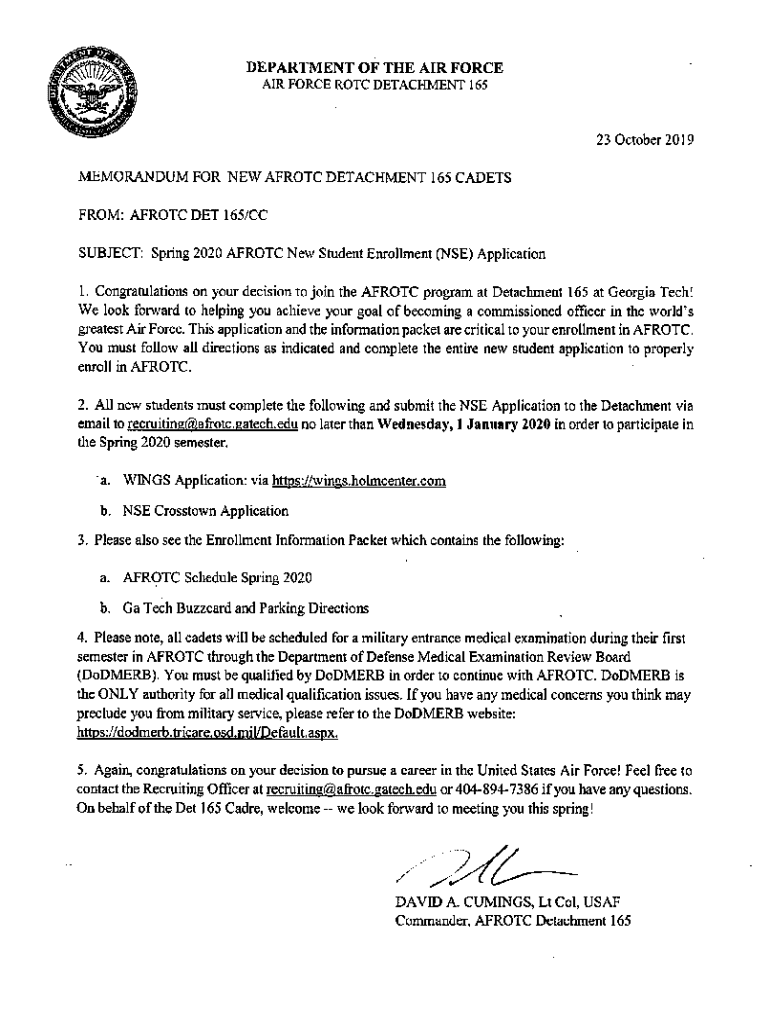 Get the free New Student Enrollment (nse) Crosstown Application - afrotc gatech