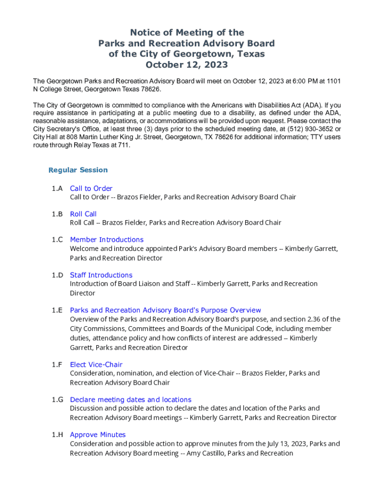 Get the free Notice of Meeting of the Parks and Recreation Advisory Board