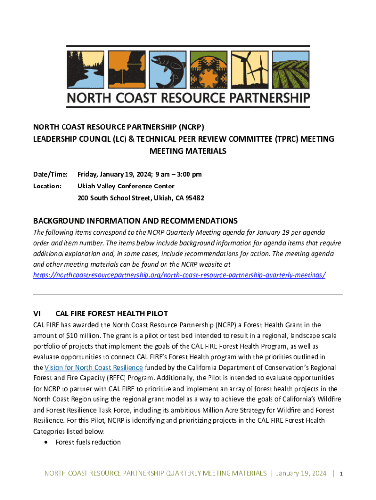 Get the free Ncrp Leadership Council Meeting Materials January 19, 2024