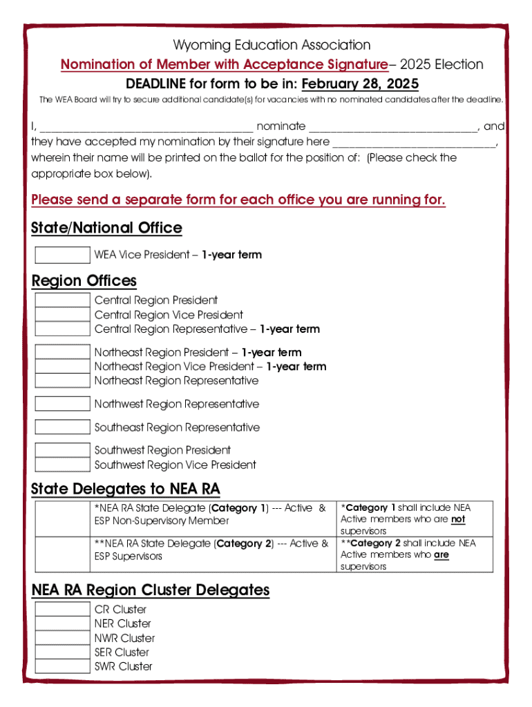Ensuring that each section is filled out accurately is crucial. Incomplete or incorrect information can lead to delays or disqualification during the nomination process.