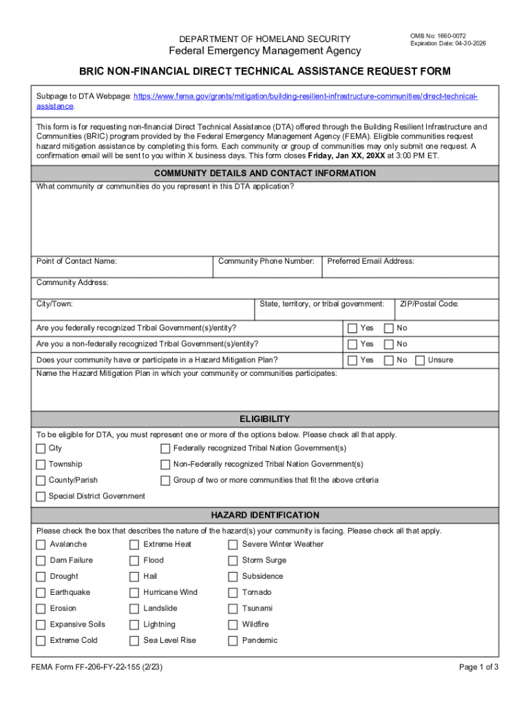 Get the free Bric Non-financial Direct Technical Assistance Request Form