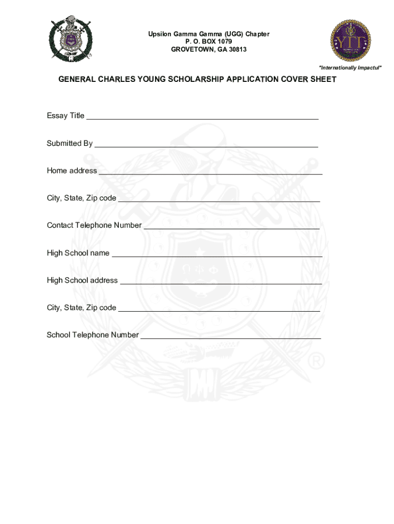 This document serves as an application for the Brigadier General Charles Young Scholarship, requiring students to submit an essay, academic records, and personal information. It aims to support financially