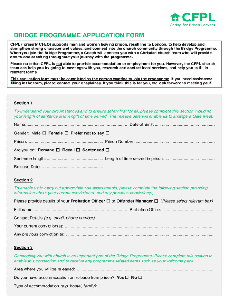 Get the free Bridge Programme Application Form
