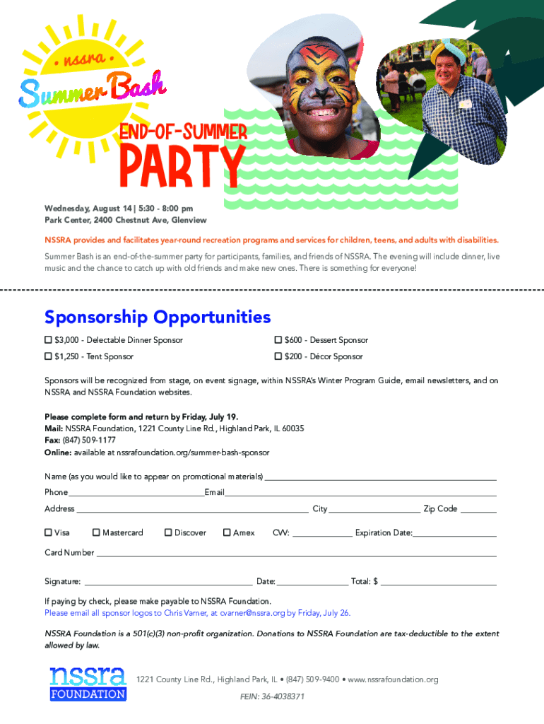 Fill out your nssra end-of-summer party sponsorship online with pdfFiller!