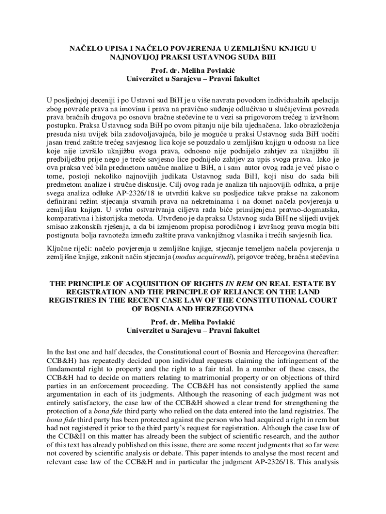 Get the free Načelo Upisa I Načelo Povjerenja U Zemljišnu Knjigu U Najnovijoj Praksi Ustavnog Sud...
