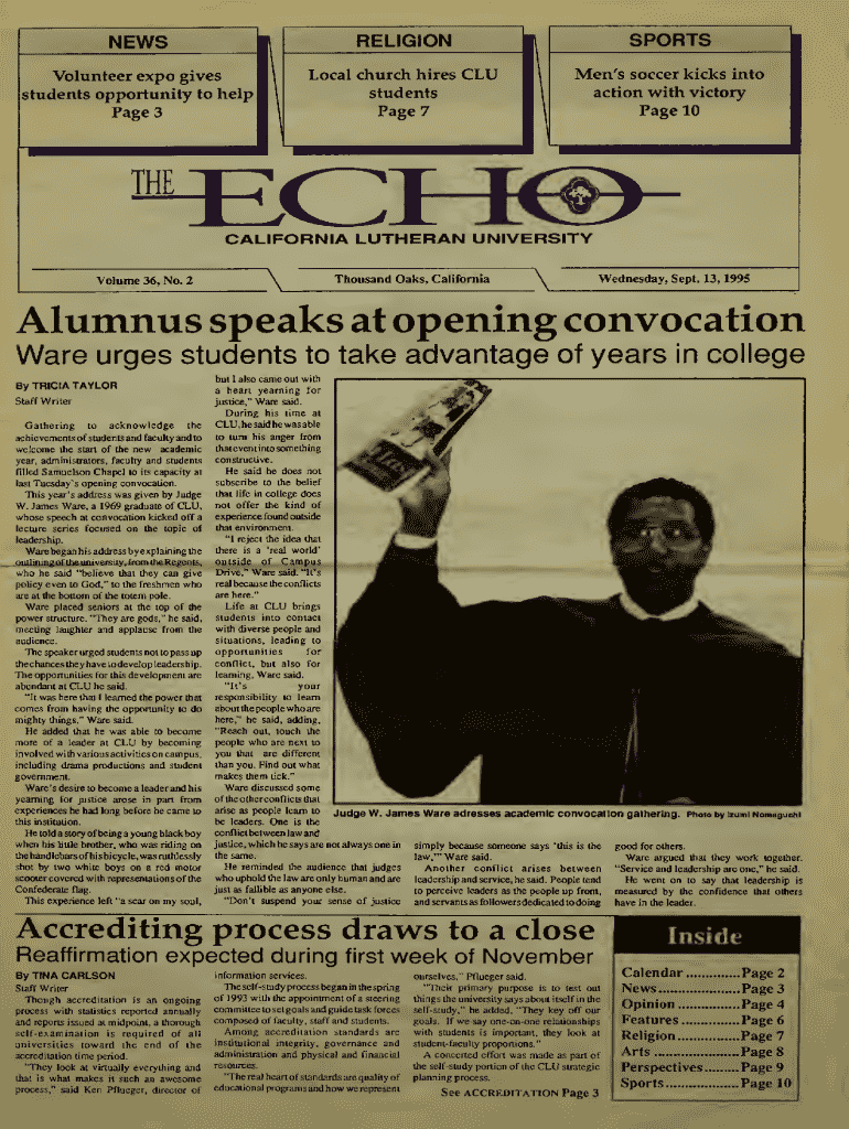 Alumnus speaks at opening convocation Ware urges students butBy TRICIA TAYLORacknowledgetotheachievements of students and faculty and tonew academicthe start of theyear, administrators, facultyfdled