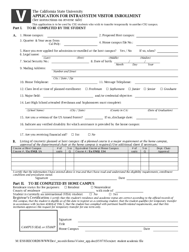 Get the free Application for Intrasystem Visitor Enrollment