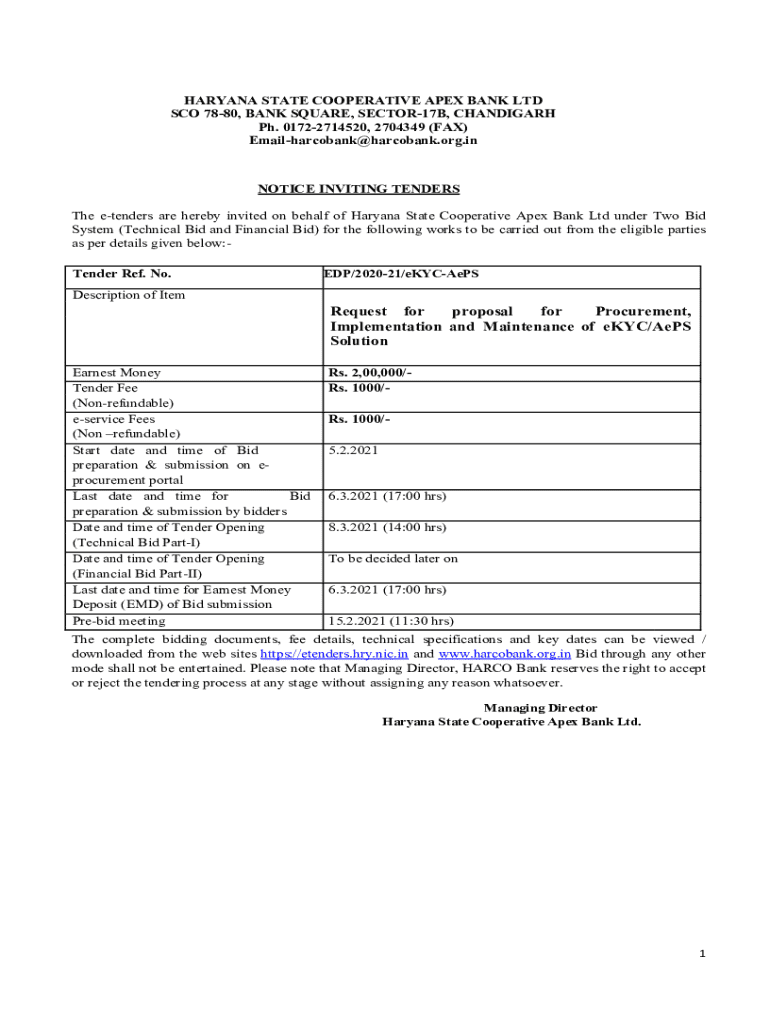 Get the free Notice Inviting Tenders