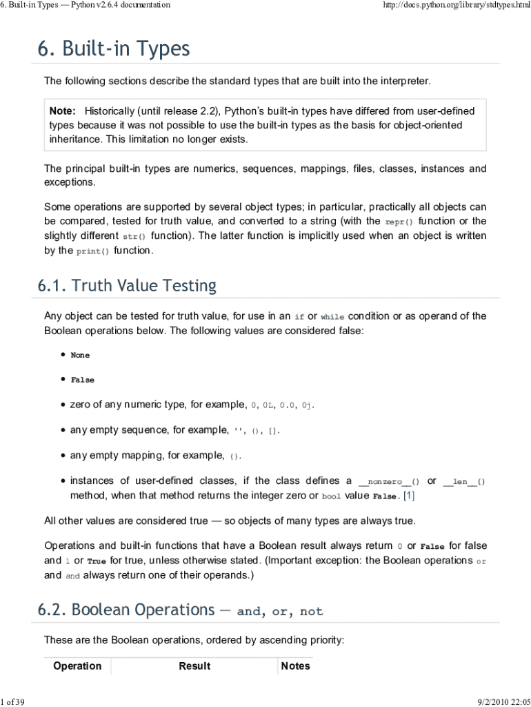Get the free Built-in Types — Python V2.6.4 Documentation