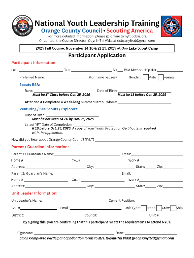 In the interim, participants should prepare for the NYLT experience by gathering necessary gear and reviewing any pre-training materials provided. Additionally, it’s essential to remain attentive to follow-up communications from the NYLT leadership, as they will provide updates and further instructions.