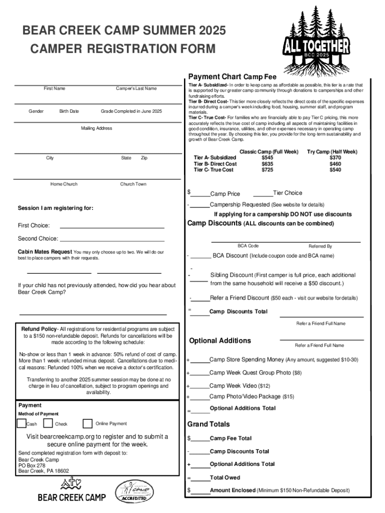 Bear Creek Camp summer form: A comprehensive guide to enrollment and experience