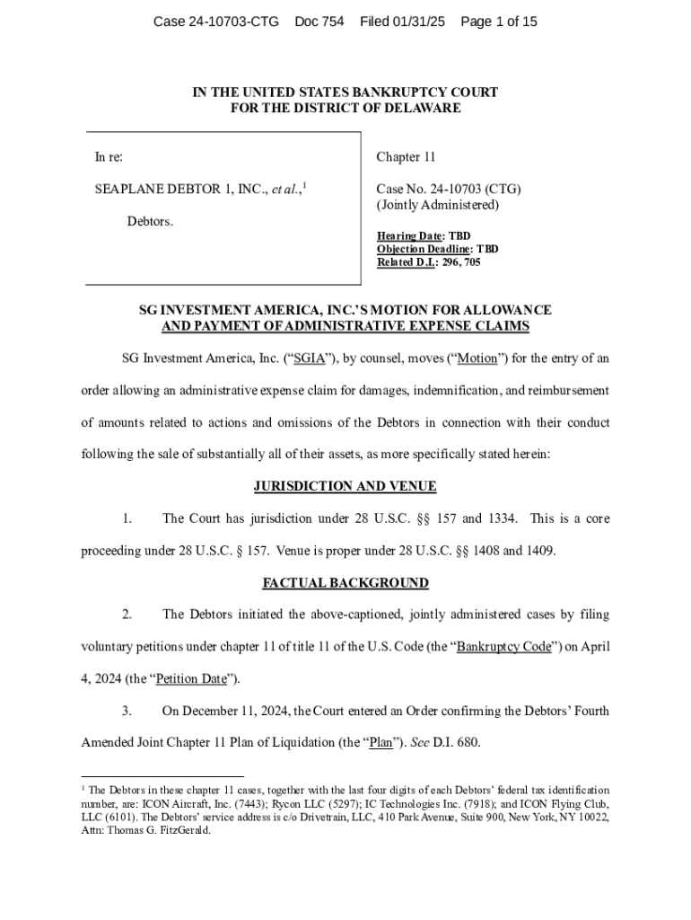 Get the free Sg Investment America, Inc.’s Motion for Allowance and Payment of Administrative Exp...