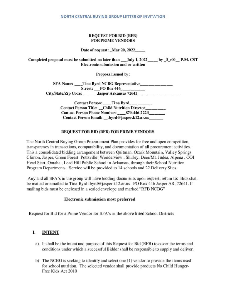 Get the free North Central Buying Group Letter of Invitation
