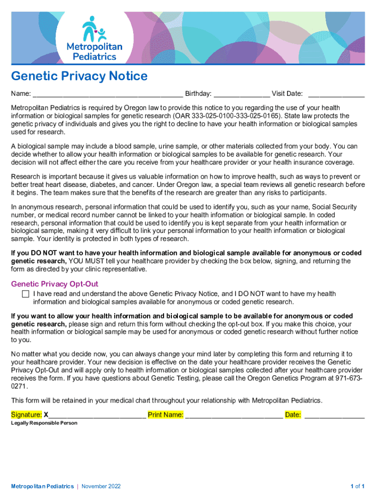 Get the free Genetic Privacy Notice