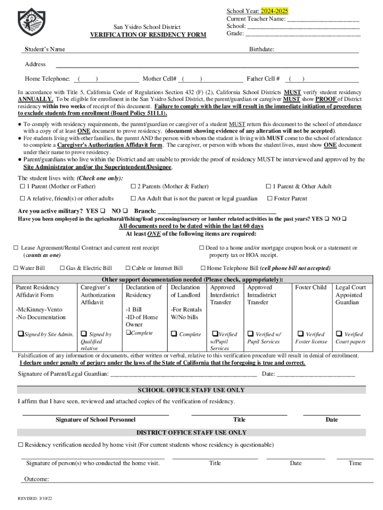Understanding the verification of residency form