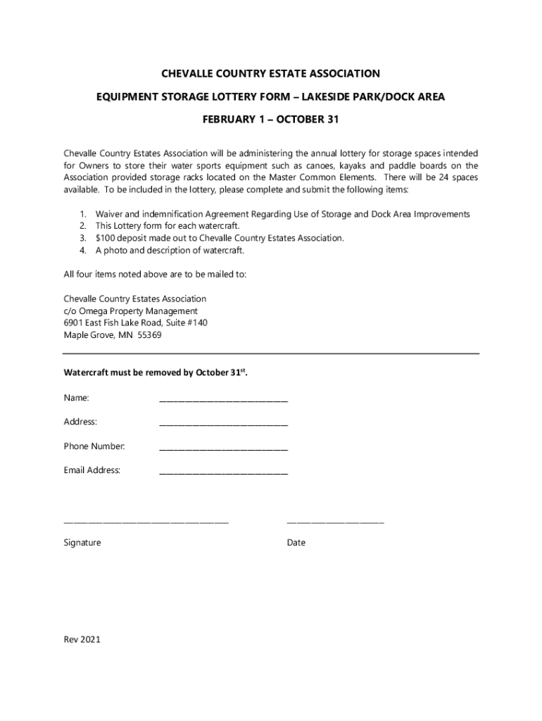Get the free Equipment Storage Lottery Form – Lakeside Park/dock Area