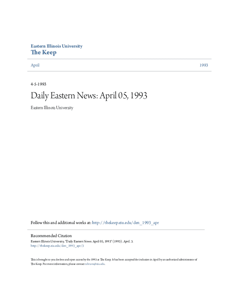 Get the free Daily Eastern News: April 05, 1993