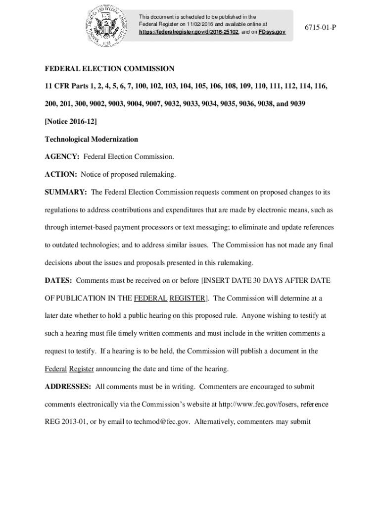 Get the free Notice of Proposed Rulemaking on Technological Modernization