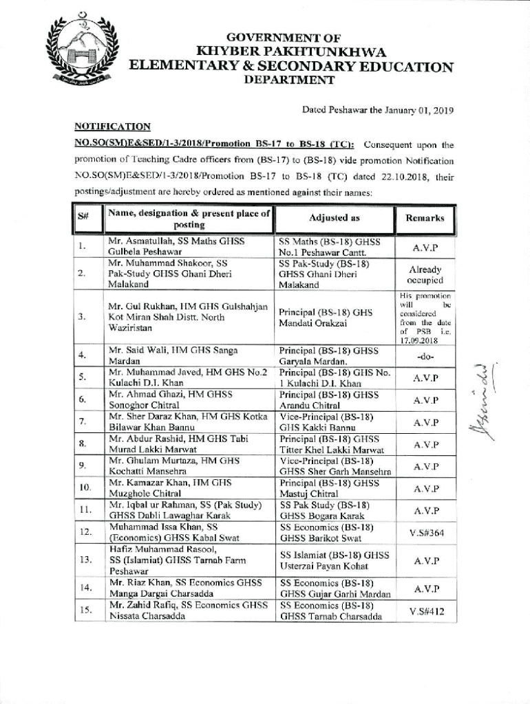 Get the free Notification No.so(sm)e&sed/1-3/2018/promotion Bs-17 to Bs-18 (tc)