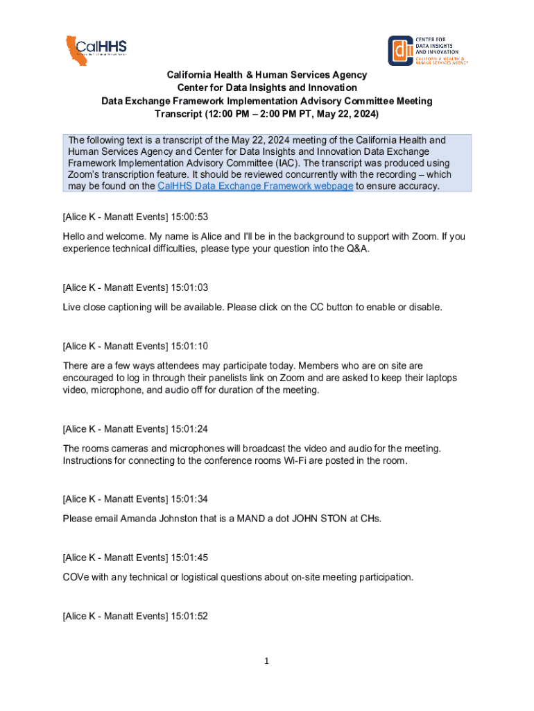 Get the free Data Exchange Framework Implementation Advisory Committee Meeting Transcript