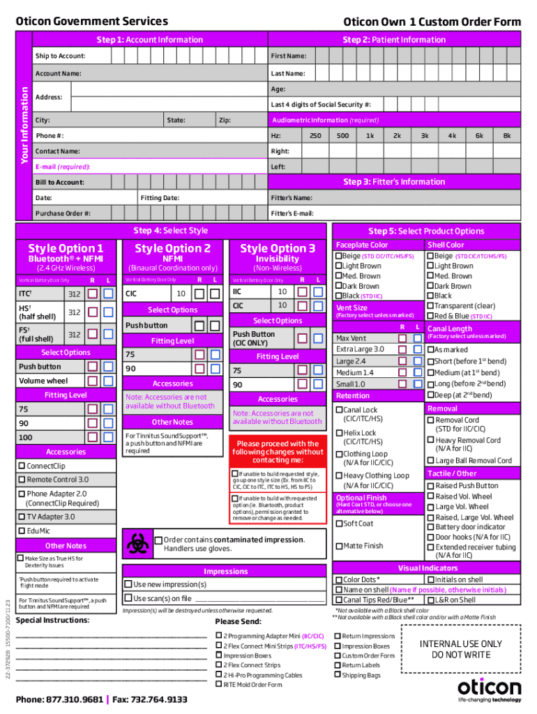 Get the free Oticon Own 1 Custom Order Form