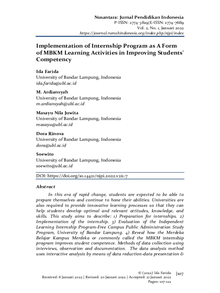 To fill out Nusantara Jurnal Pendidikan Indonesia, authors must follow specific guidelines provided by the journal, including formatting their manuscript according to the journal's template and providing necessary author information.