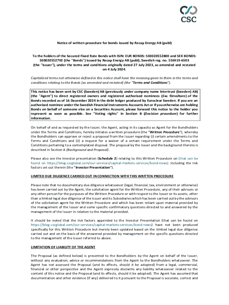 Get the free Notice of Written Procedure