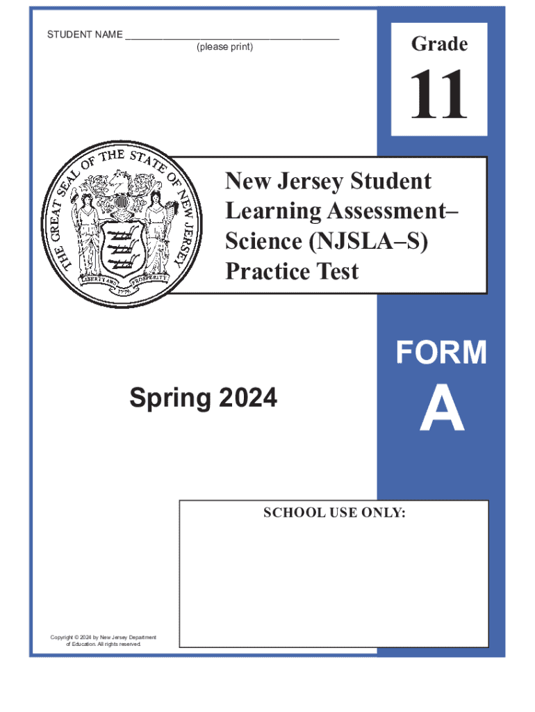Get the free New Jersey Student Learning Assessment–science (njsla–s) Practice Test