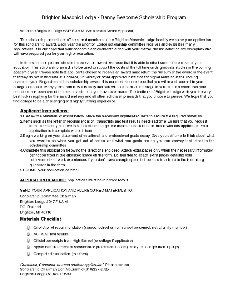 Get the free Brighton Masonic Lodge - Danny Beacome Scholarship Program