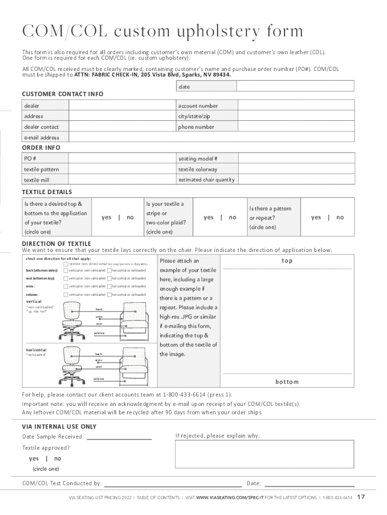 Get the free Com/col Custom Upholstery Form