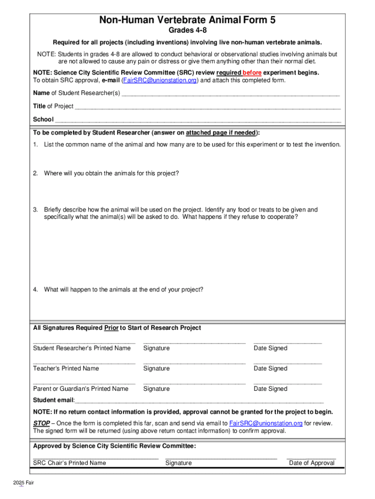 Get the free Non-human Vertebrate Animal Form 5
