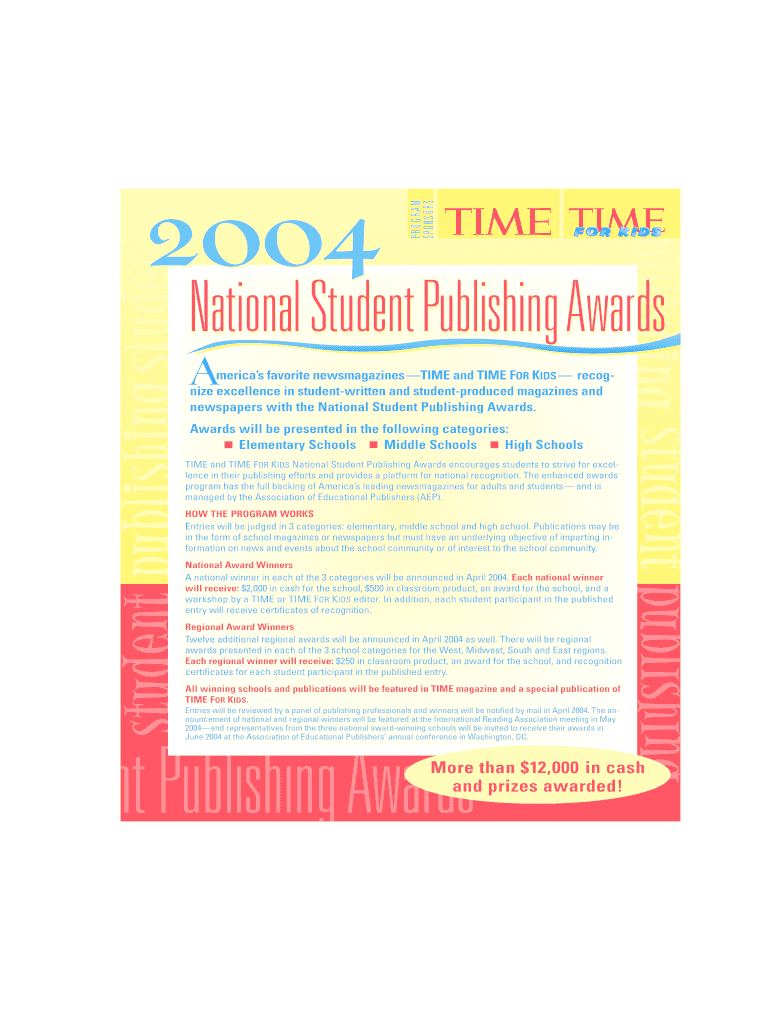 PROGRAM SONS ORS student publishing student p CMYK TIME Imaging t publishing student publishing 2004 National StudentPublishing Awards A America s favorite newsmagazines TIME and TIME FOR KIDS recognize