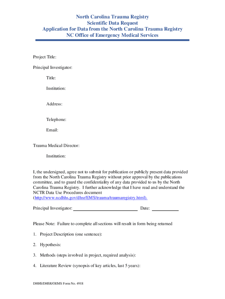 Get the free North Carolina Trauma Registry Scientific Data Request