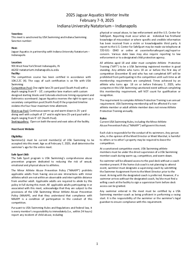 Filling out the 2025 Jaguar Aquatics Winter Form requires attention to specific eligibility criteria and detailed personal information. Understanding these requirements is essential for a smooth registration process and ensures compliance with team regulations.