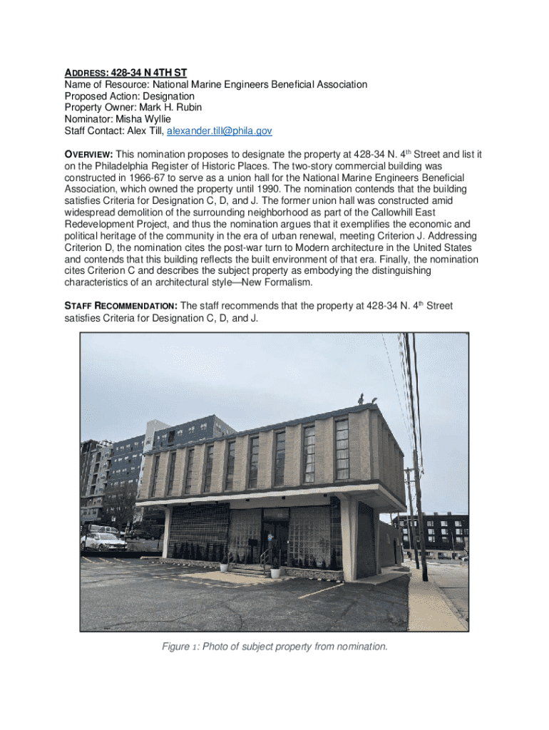 Get the free Nomination for the Philadelphia Register of Historic Places