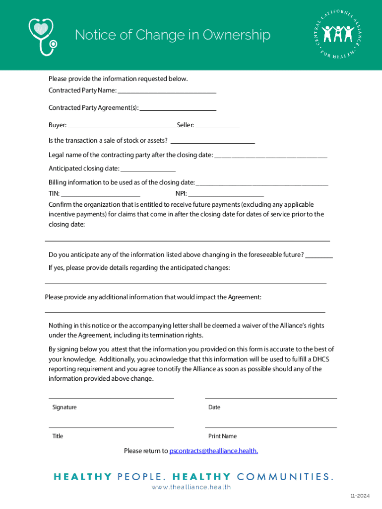Get the free Notice of Change in Ownership