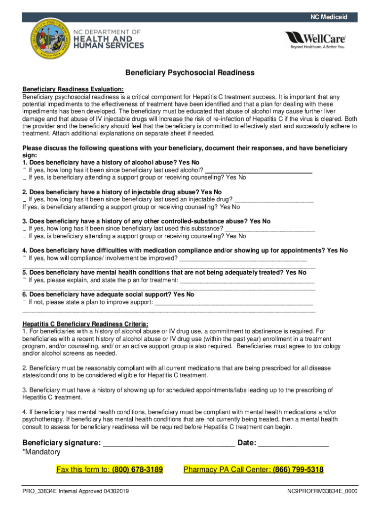 Get the free Nc Medicaid Beneficiary Psychosocial Readiness