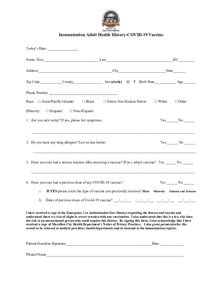 How to fill out immunization adult health history-covid-19