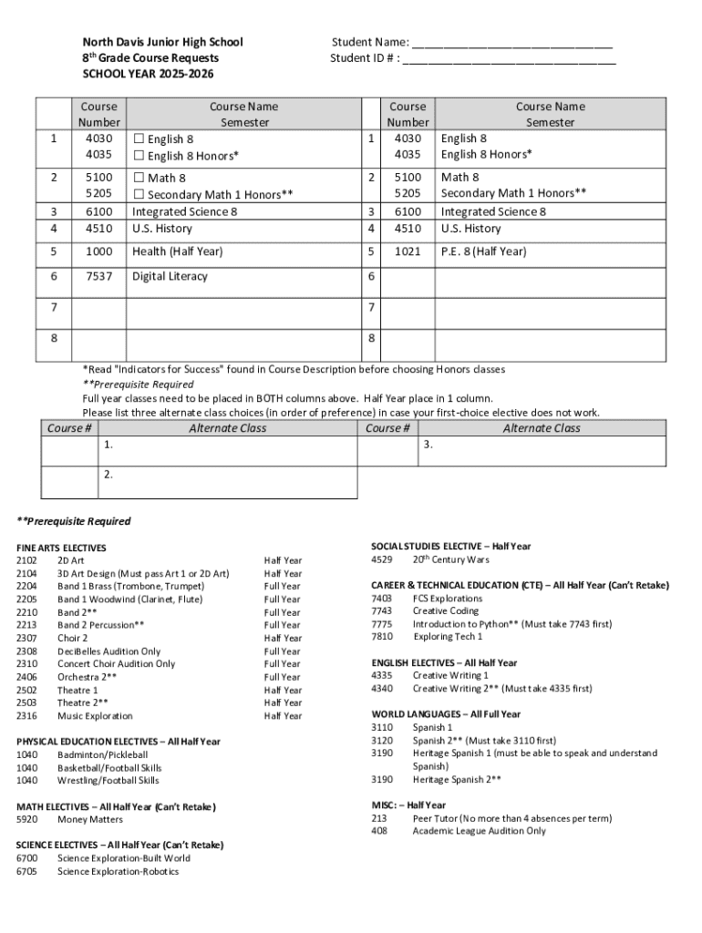 Get the free North Davis Junior High School 8th Grade Course Requests